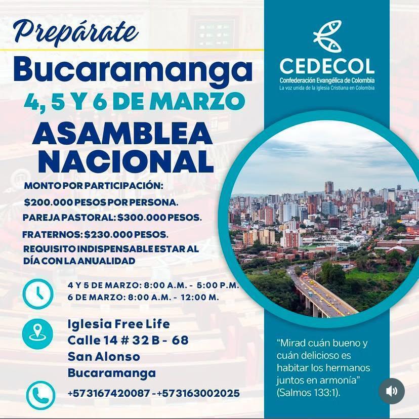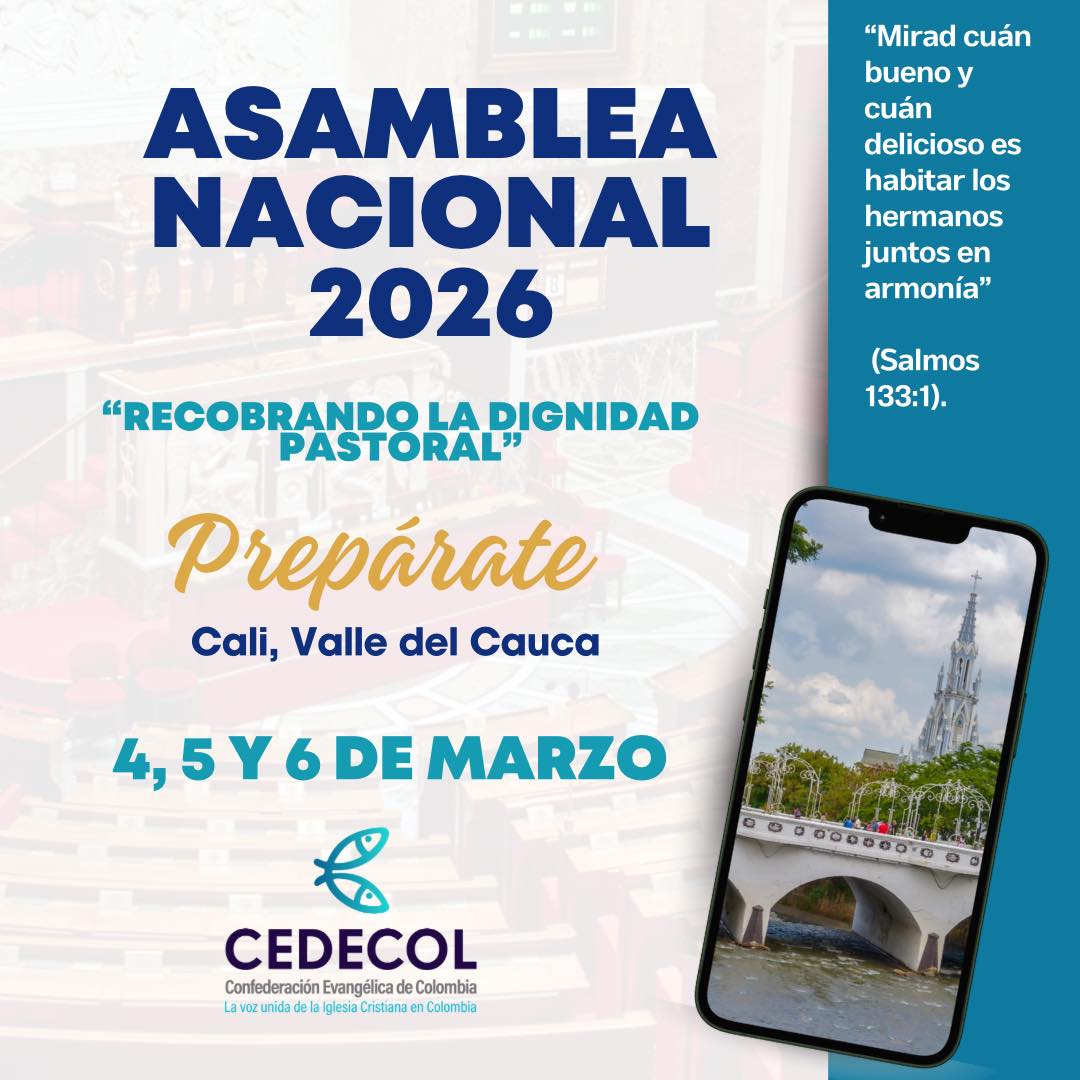 La Asamblea Nacional 2026 reunirá en Cali, los días 4, 5 y 6 de marzo, a líderes, pastores y representantes de todo el país en un espacio de reflexión, dirección espiritual y fortalecimiento institucional. Bajo el lema “Recordando la Dignidad Pastoral”, este encuentro busca exaltar el valor del servicio ministerial, renovar el compromiso con el llamado y proyectar el futuro de la misión